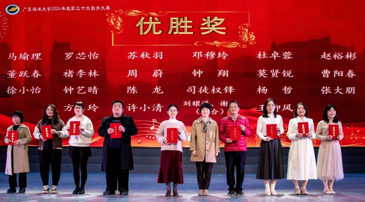 为进一步激发blh漫画 广大教职工的爱国爱校热情与工作激情,喜迎学校90周年华诞,12月26日,由学校教育工会主办的“喜迎海大90华诞·2024年教职工十大歌手大赛”总决赛在湖光校区中歌实验剧场举行。我院工会在本次活动中荣获“优秀组织奖”本次比赛得到了广大教职工的热烈响应,教职工们踊跃报名参加比赛。经过激烈角逐,我院工会会员孙一方老师荣获亚军,张大朋老师、褚李林老师获“优胜奖”