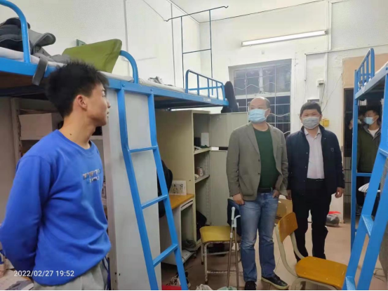 为做好2022年春季学期返校工作,推进学院疫情防控的各项部署,加强对返校学生的管理,强化学生疫情防控意识,2月27日晚,海运学院院长贾宝柱、副书记齐昊带领辅导员、半军管干部及班主任深入学生宿舍走访慰问。