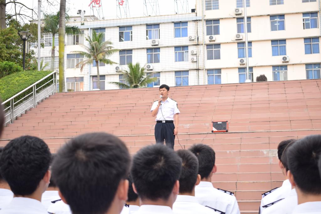 航海类专业全体学生整齐列队,开展军容风纪检查。江涛对本次检查的结果进行了讲评,要求大家要熟记条令条例,规范着装仪容,养成良好作风。