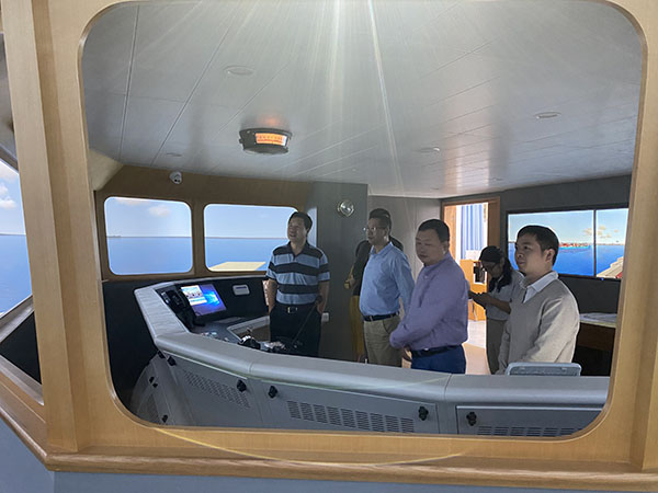 会后,姜伟一行参观了航海模拟器、轮机模拟器等实验室。