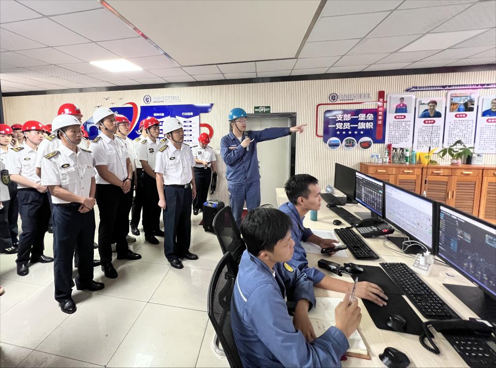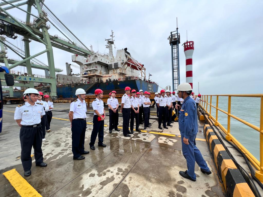 首先,王钰琛校友带领同学们参观了宝钢主原料码头、全天候码头、成品码头以及成品码头集控室,实地了解了港口物流的前沿技术。随后,前往湛江钢铁党员活动中心开展座谈交流。