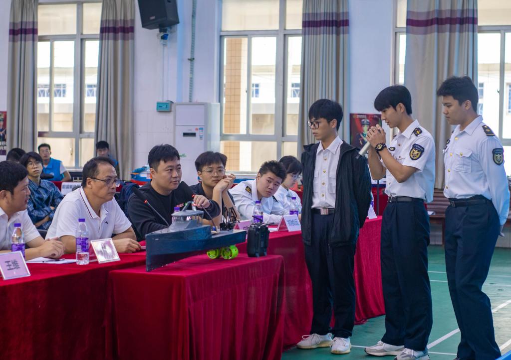 、电子与信息工程学院、食品科技学院、机械工程学院、滨海农业学院等11支队伍进入本次决赛。首先,决赛队伍依次从设计理念、制作过程、创新亮点等方面进行汇报,并通过操纵模型水上行驶的形式进行作品展示。随后,评委老师从设计理念、设备运用、技术创新等方面进行提问及点评。最后,经过激烈的角逐,“琼羽号”以优秀的设计理念、合理的船体构造、科学的技术融合斩获本次大赛第一名。