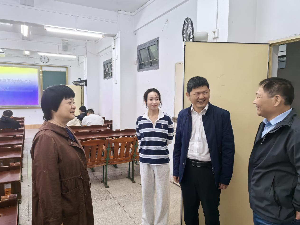 招聘会期间,学院党委书记邓朝晖,正处级辅导员、党委副书记齐昊、21级陆上专业辅导员孟庆龙与参会企业代表围绕“产教融合协同育人”展开交谈。邓朝晖表示:“学院始终以服务国家海洋强国战略为导向,注重理论与实践结合,通过校企联合课程、实习基地共建等方式提升学生核心竞争力。希望以招聘会为契机,进一步拓展合作深度,为企业输送更多高素质应用型人才。”企业代表对学院毕业生的专业素养和实践能力给予高度评价,并期待与学院在人才培养、技术攻关等领域深化合作。
