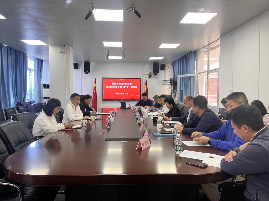 党委在海滨校区实验楼202会议室召开党委理论学习中心组(扩大)学习会。学校党委常委、副校长鲁义善列席旁听。会议由学院党委书记邓朝晖主持,学院领导班子成员、党委委员、党支部书记,各系(办、中心)主任、教师代表和旁听工作小组成员等20余人参加了会议。