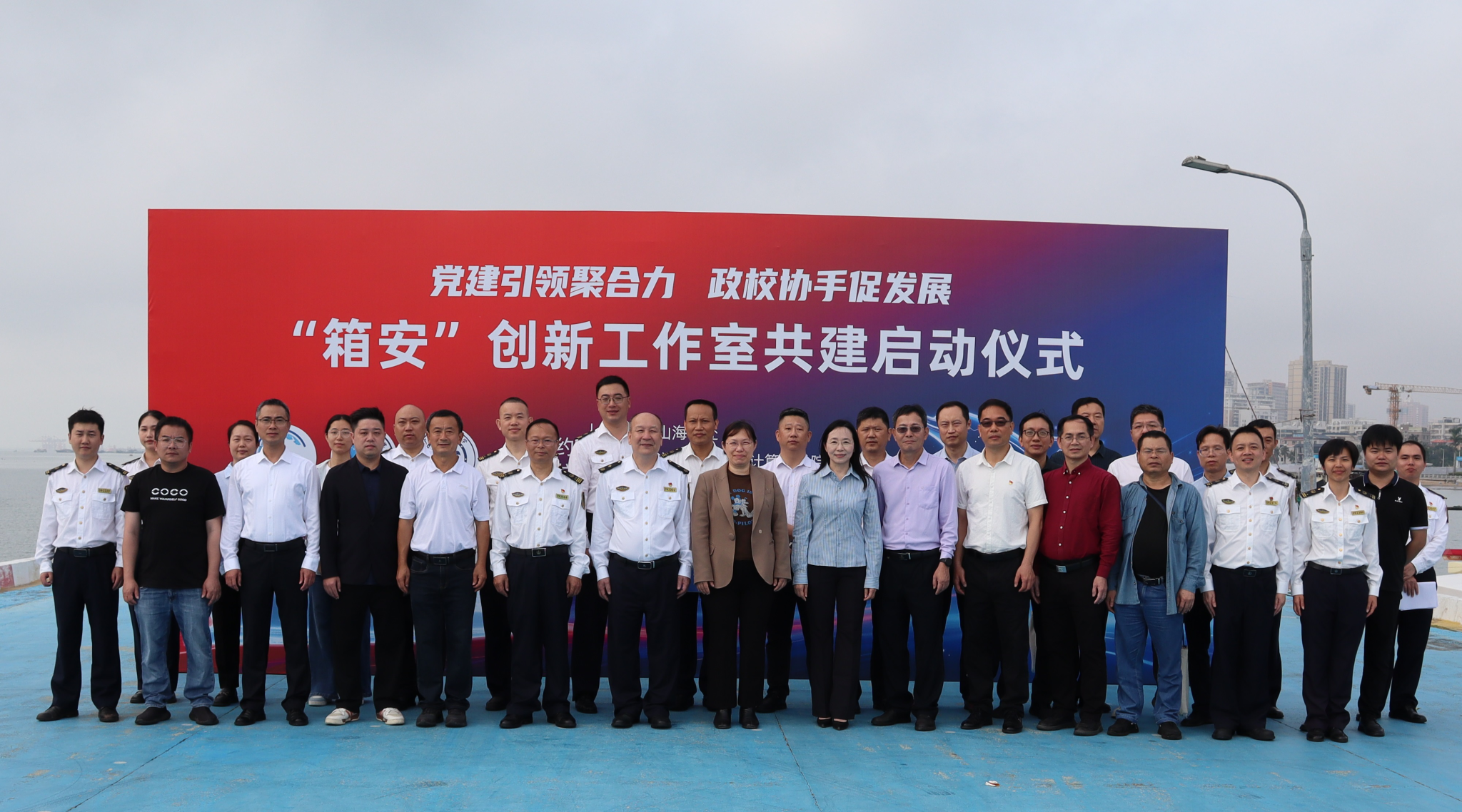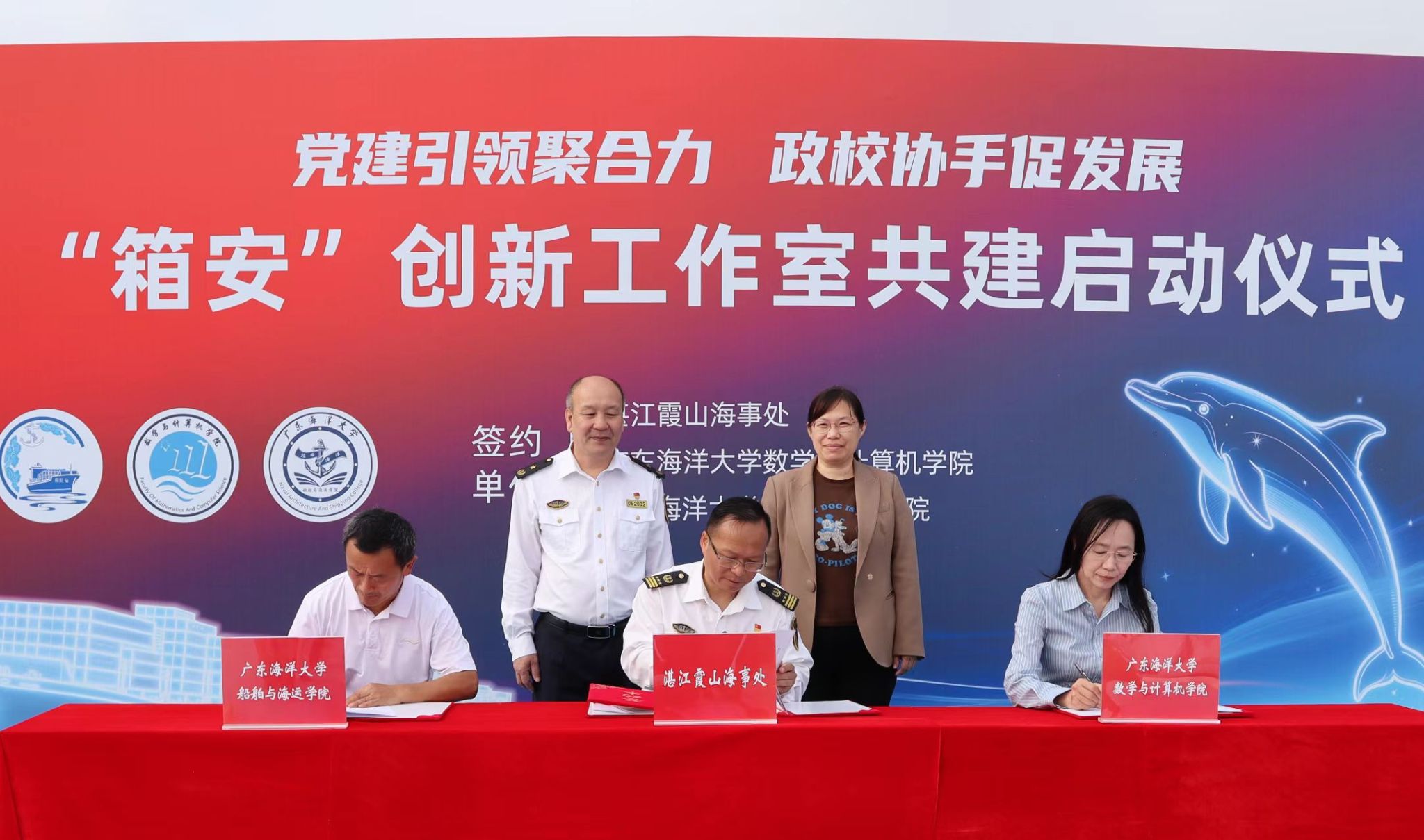 、数学与计算机学院领导班子及师生代表,湛江海事局相关处室负责人,箱安创新工作室共建单位嘉宾参加活动,仪式由霞山海事处政委骆亚养主持。