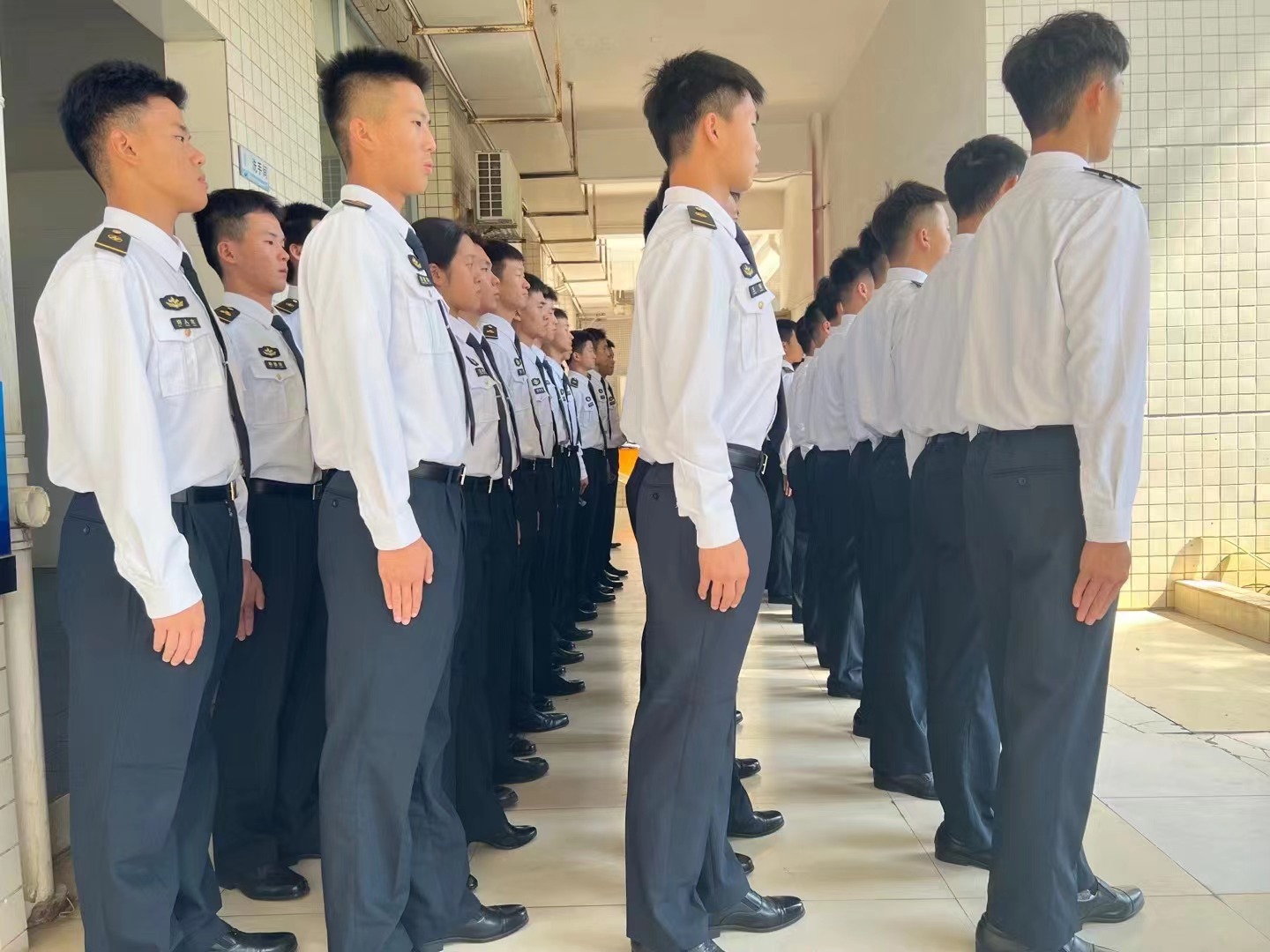 优秀学生表彰大会的礼仪服务工作。他们态度端正、训练刻苦、工作认真,展现出严谨的工作作风、扎实的队列动作,得到了学校领导的一致表扬和肯定。此次是海运学院航海类专业学生第三次担任表彰大会礼仪勤务工作,21级45名同学们顺利接过学长们的接力棒,检验了航海类专业半军事教育管理的培养成果,具备较高的思想觉悟、较强的奉献精神和团队意识。