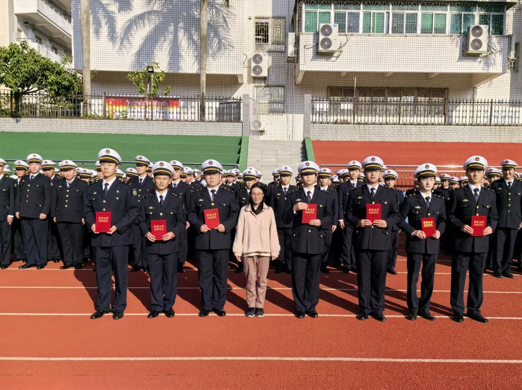 检验本学期航海类专业同学们日常半军事化管理和训练成效,增强同学们的集体荣誉感和战斗力,夯实军事技能基础。1223下午学院在海滨校区运动场组织2023级队列会操,学院半军管副大队长江涛刘抒睿,辅导员黄荔、陈方圆参加了本次会操,活动由刘抒睿主持。