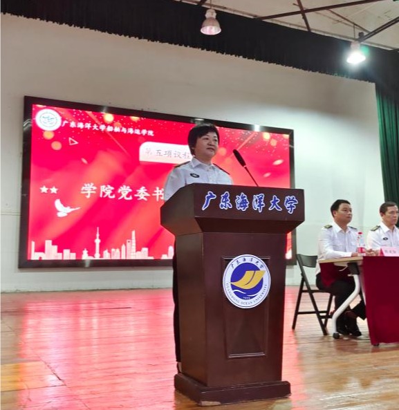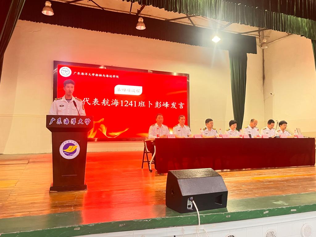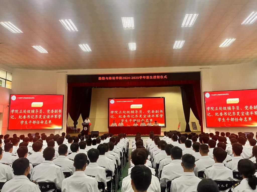 首先,齐昊宣布了新一届半军管学生干部名单,随后,贾宝柱为半军管学生干部和24级学生代表佩戴了“一道杠”校衔。最后,邓朝晖总结讲话,强调半军管对于航海专业学生的重要意义,希望同学们严格遵守学院半军事化管理的各项规定,刻苦训练,认真学习,为建设海洋强国、交通强国贡献自己的力量。