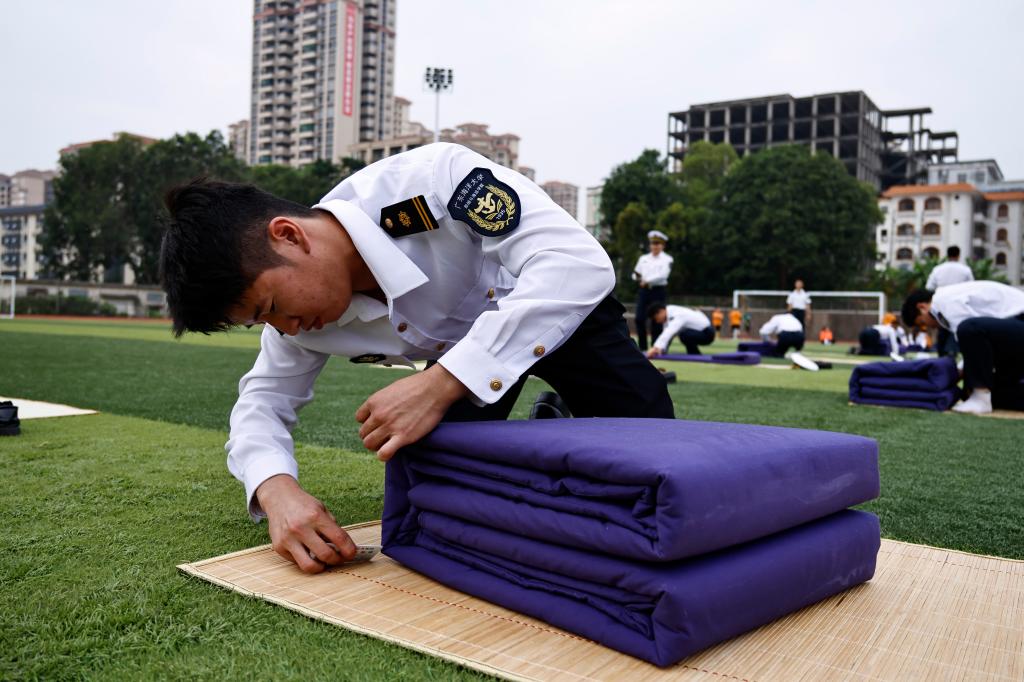首先,集中进行了队列歌曲行进评比、单个军人队列动作、叠军被共三个项目的比赛,参赛队伍高标准,严要求,团结协作,顽强拼搏,充分展示了学院半军事化管理的成效。随后,齐昊宣读了获奖集体和个人名单并进行了颁奖仪式。最后,邓朝晖充分肯定了学院24级学生半军事化管理工作,希望同学们继续保持这种昂扬向上的精神风貌,积极将半军事化管理的理念内化于心、外化于行,并转化为前进的动力和力量。
