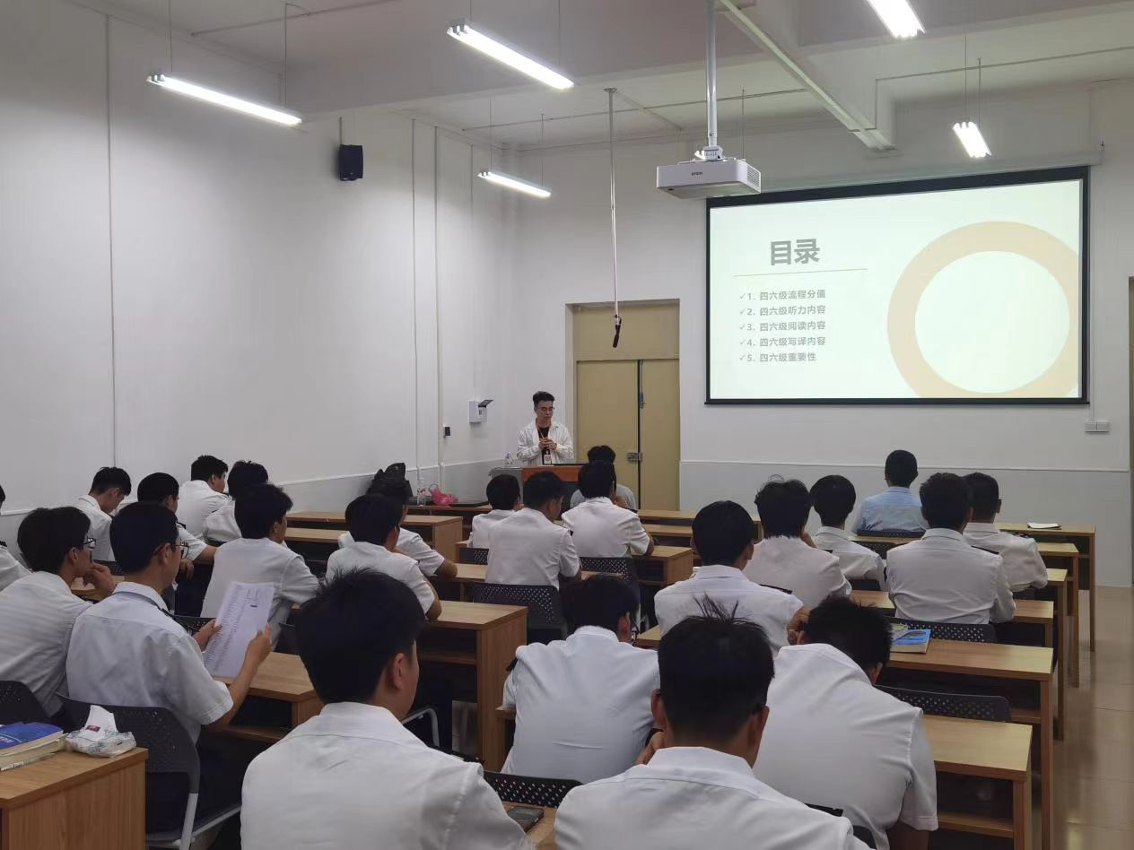 举办“英语四六级备考冲刺讲座”。学院正处级辅导员、党委副书记齐昊,学院团委书记郑祯远,高顿教育卢戈梓老师及140余名学生参与本次活动。