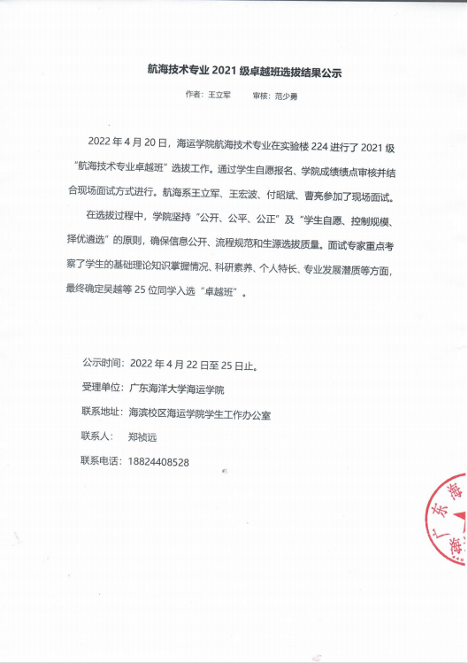 发布者:王立军 时间:2022-04-22 17:01:22 来源:航海系办公室 编辑:海运学院 审核:范少勇 浏览: