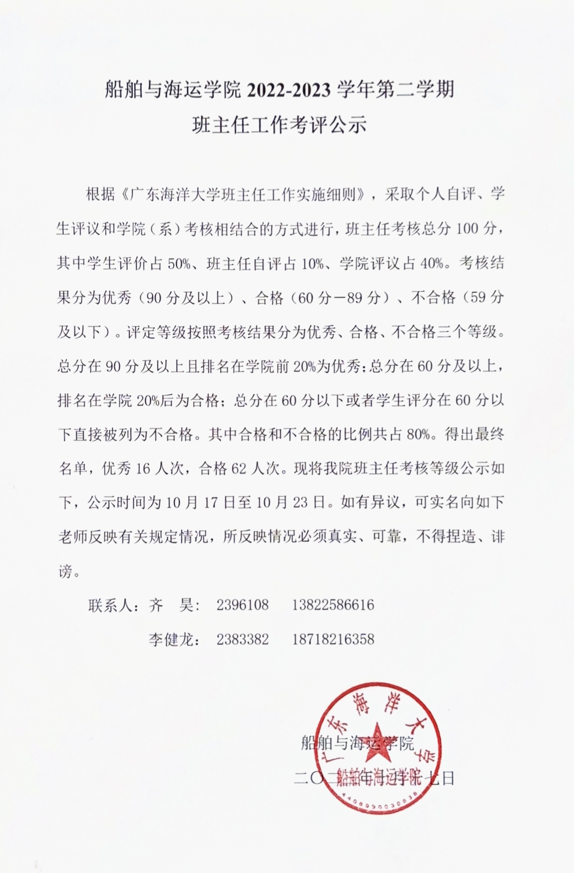blh漫画 2022-2023学年第二学期班主任工作考评公示