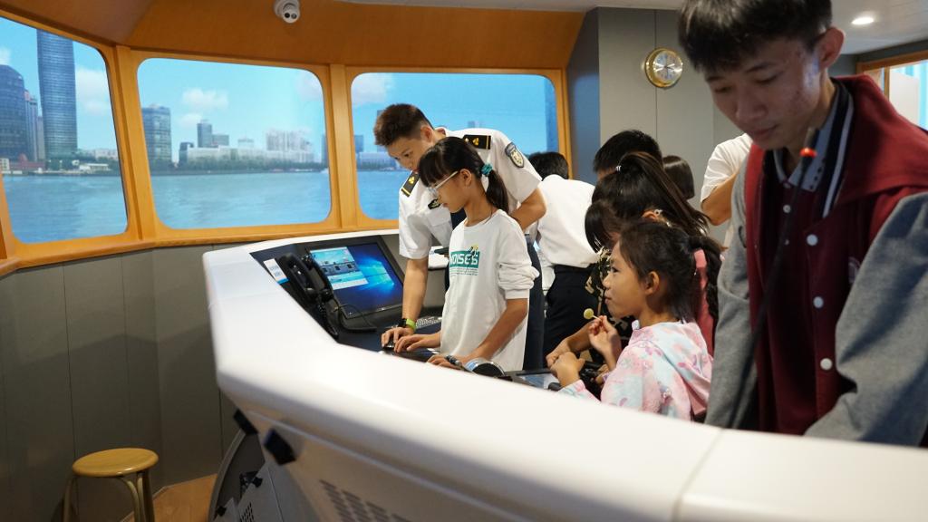 活动的高潮部分,无疑是航海驾驶模拟器的体验环节。在志愿者的指导下,学生们轮流接过舵轮,仿佛真的置身于浩瀚的大海之中,驾驶着巨轮劈波斩浪。那一刻,他们的眼中闪烁着冒险的火花,心中充满了对航海事业的向往与憧憬。