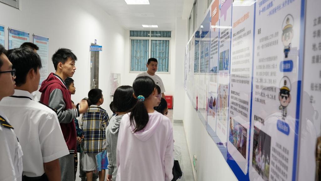 随后,一行人步入航海科技文化长廊,这里以时间轴为线索,全面展示了从古代航海到近现代航海的发展历程。特别是当讲解到该校杰出校友——陈宏泽船长的事迹时,学生们深受鼓舞,他的故事如同一座灯塔,照亮了孩子们心中的航道,激励着他们勇敢追梦,为祖国的航海事业贡献力量。