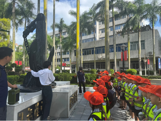 那极具标志性的船锚雕塑前。现场的志愿者们热情似火,脸上洋溢着真诚的笑容,用生动有趣、通俗易懂的语言,为小朋友们揭开了船锚神秘的面纱。他们从锚爪那独特精巧的形状设计讲起,那是为了能在海底牢牢抓地;再到锚杆那坚实稳固的作用,如同船锚的脊梁;最后详细阐述了整个船锚在船舶停靠时如何发挥关键力量,让船舶稳稳停驻。志愿者们讲解得细致入微,每一个细节都不放过;小朋友们也听得格外认真,眼睛紧紧盯着志愿者,生怕错过任何一个精彩的知识点。为了铭记这难忘的瞬间,小朋友们在船锚前整齐排列,如同一个个可爱的小天使,绽放出灿烂如阳光般的笑容,“咔嚓”一声,快门按下,那一张张纯真的笑脸与威严的船锚共同构成了一幅温馨美好的画面,仿佛定格了时光。