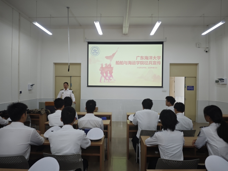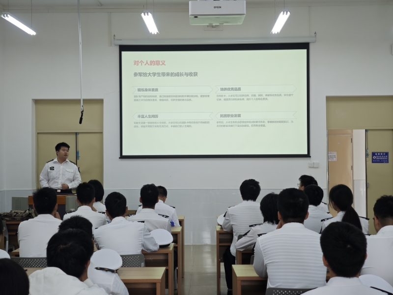 兵员预征预储工作,营造参军报国的浓厚氛围,引导船海学子积极服务国防、投身强军事业,11月30日上午,船舶与海运学院在海滨校区济海楼1号教室组织2026年春季征兵宣传会,学院兼职武装干部、半军管大队长江涛、预征预储船海中队全体人员及志愿入伍毕业生50余人参加活动,活动由预征预储船海中队副中队长王玉堃主持。