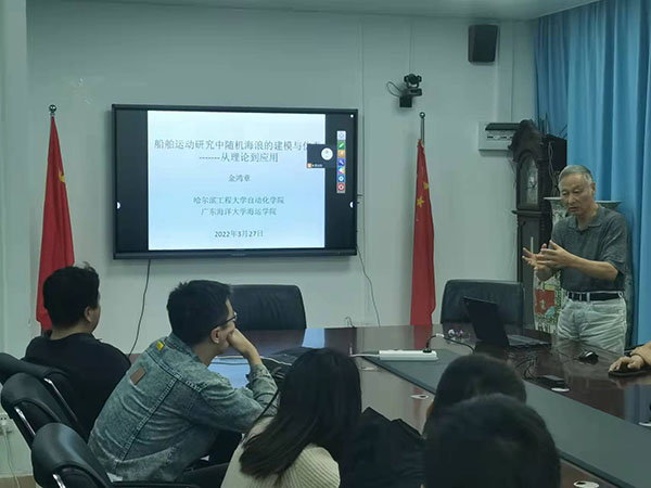 应海运学院邀请,学校讲座教授金鸿章于3月27日下午在海滨校区实验楼202室作了题为“船舶运动研究中随机海浪的建模与仿真”的学术讲座,来自海运学院、海洋工程等学院的师生共计40余人到场聆听,讲座由海运学院院长贾宝柱主持。